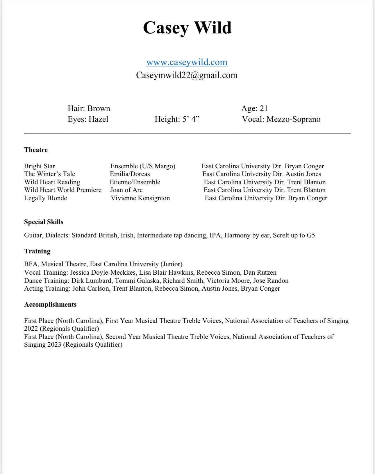 Thank you for stopping by! I am a Senior Musical Theatre and English major at East Carolina University. I got my start in theatre at age 8 playing Lord Farquaad in Shrek the Musical and I’ve never looked back. When I’m not performing, I love to read classics, play guitar, listen to The Avett Brothers, and hang out with my best friends.